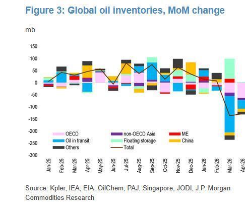 即便如此,摩根大通认为,缺口仍在扩大:即使将上述所有缓冲因素纳入计算,在霍尔木兹海峡完全封锁的情景下,总供应缺口仍比此前预测扩大了约100万桶/日(1 mbd)。